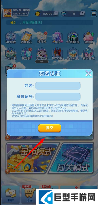 2、接着获取游戏里的实名认证,输入自己的信息后点击提交