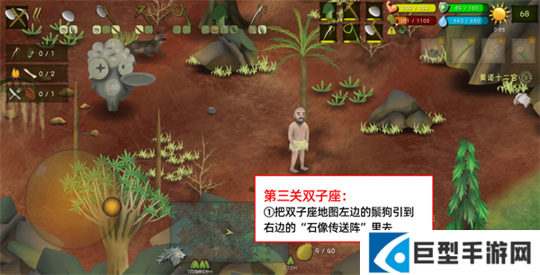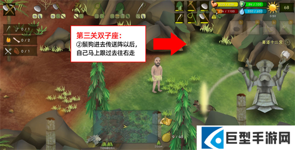 ①把双子座地图左边的鬃狗引到右边的“石像传送阵”里去