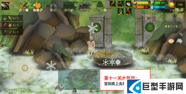 ②让竹子精吐出来的东西去打宝剑路障,打碎路障拿到宝剑即可通关