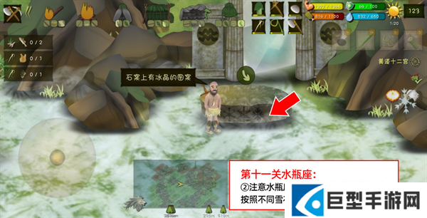 ②注意水瓶座关卡石案上有冰晶的图案,按照不同雪花图案接雪花