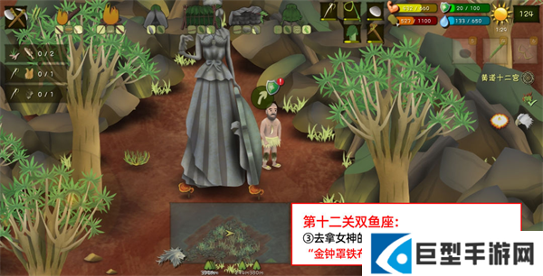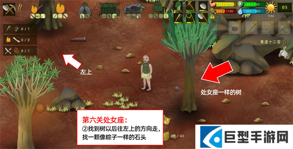 ①先去地图的最右边找一颗和处女座关卡门口堵着的一模一样的树