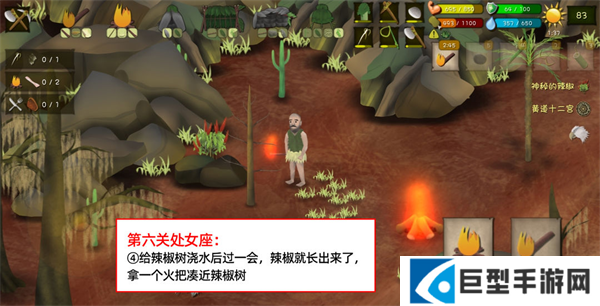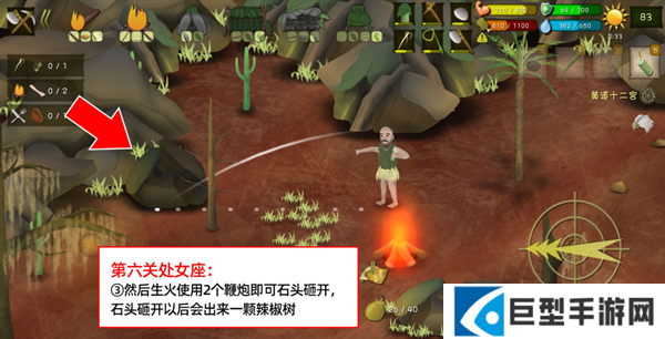 ③然后生火使用2个鞭炮即可石头砸开,石头砸开以后会出来一颗辣椒树