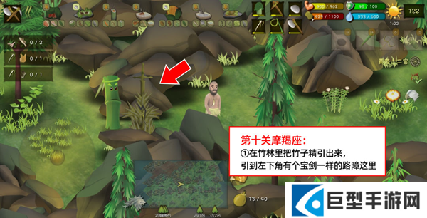①在竹林里把竹子精引出来,引到左下角有个宝剑一样的路障这里
