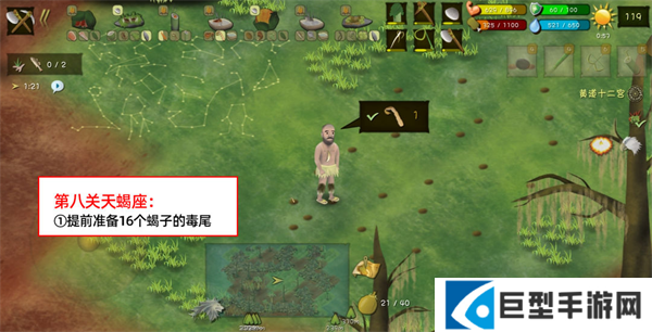 PS:完成所有黄道十二宫任务之前可以先种植葡萄树和西瓜,或者去做处女座的任务得到“武林秘籍”和装满14个竹筒的海水,顺路把捉16个蝎子把尾巴留着,多采灵芝以备不时之需。