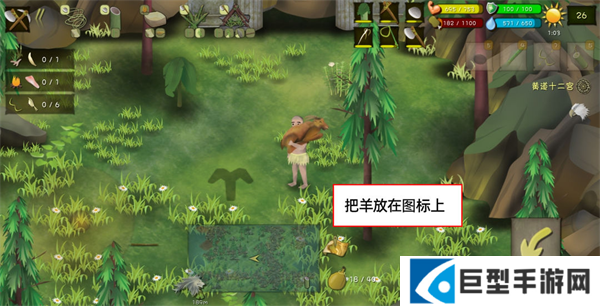 ①用【双弹绳套陷阱】捕捉一只“上吊羊”