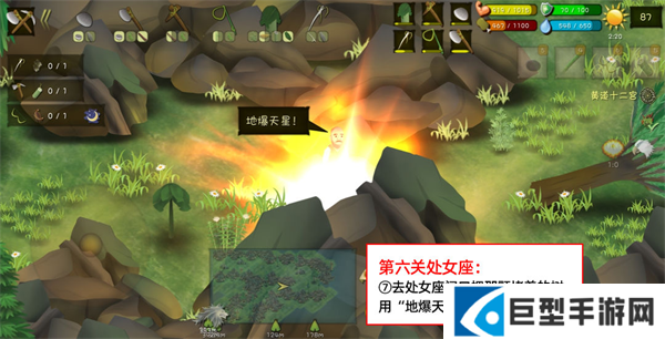 ⑦去处女座门口把那颗堵着的树,用“地爆天星”炸开