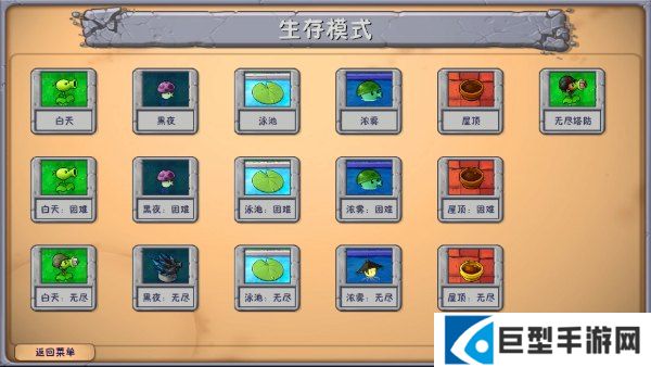 包括白天/黑夜/泳池,迷雾/屋顶的普通和困难关卡,泳池无尽,塔防无尽。