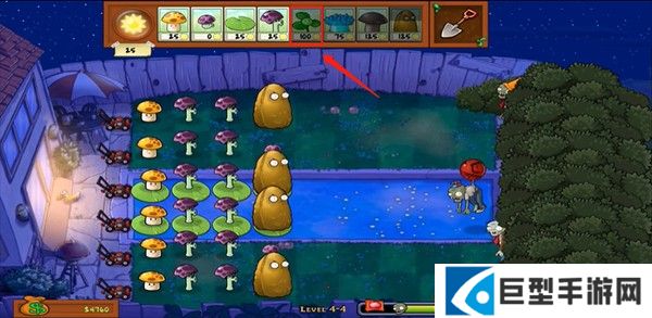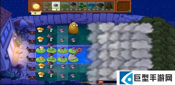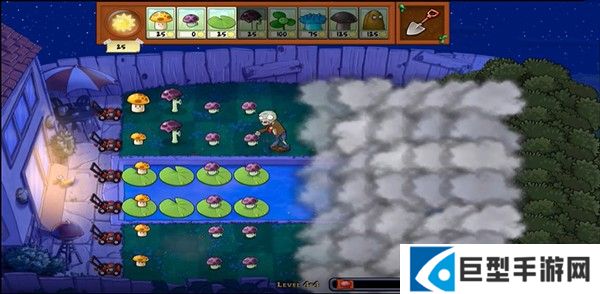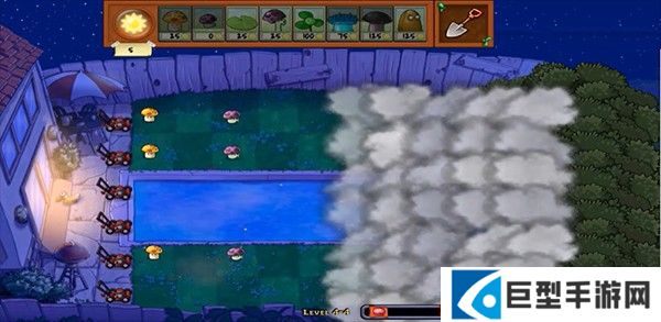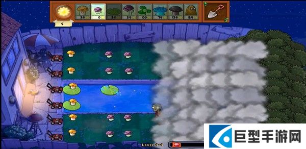 4、大家可以看到此版本与其他版本有很大的不同,上面有一层云遮挡,所以你不知道对面来了多少僵尸,可以说非常的刺激。