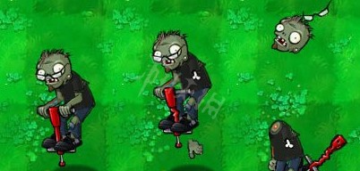 跳跳僵尸有弹跳杆时会高速前进,能免疫寒冰蘑冻结。