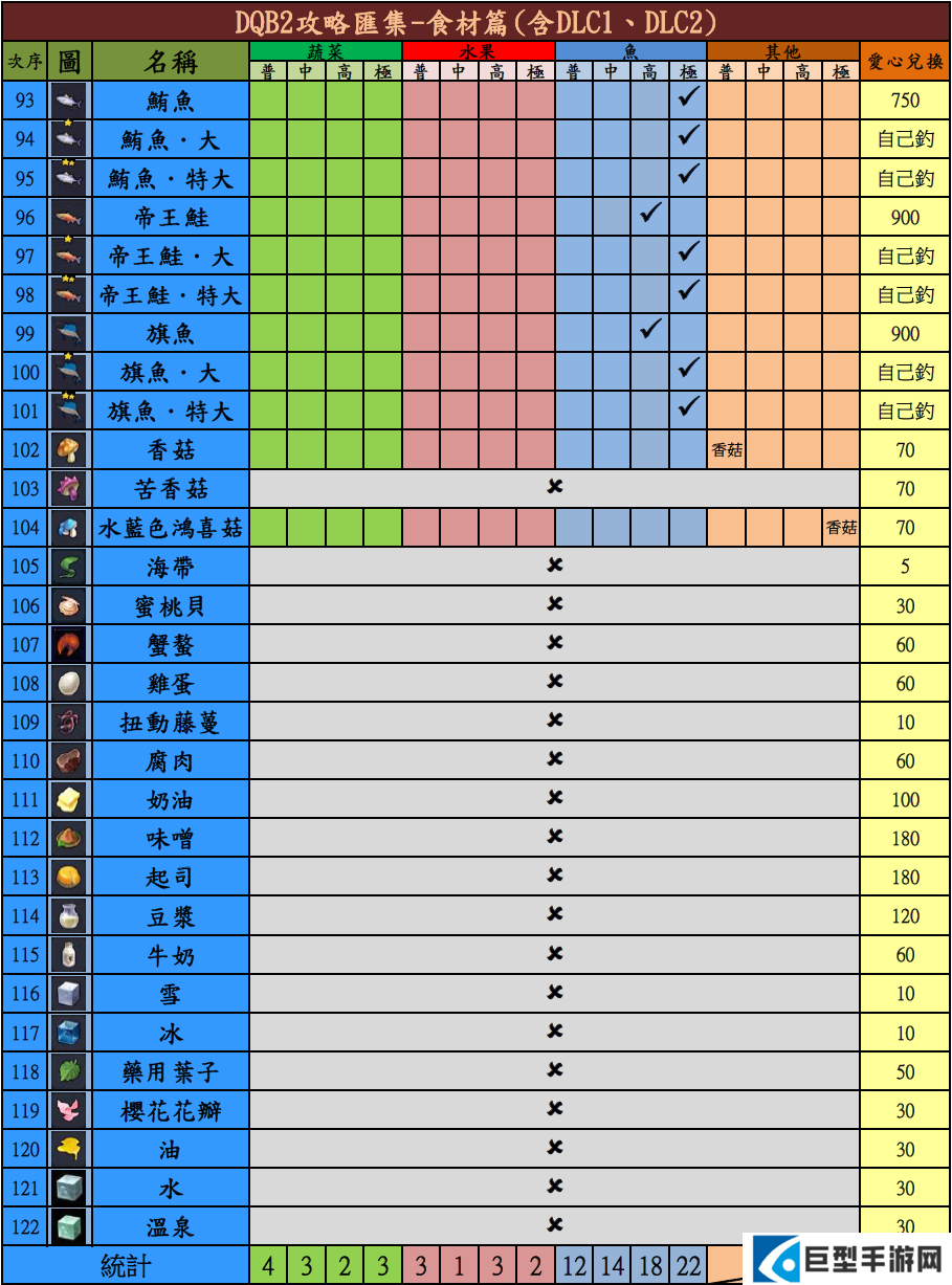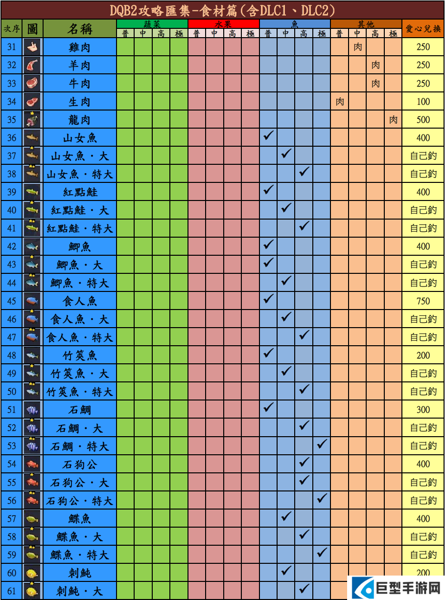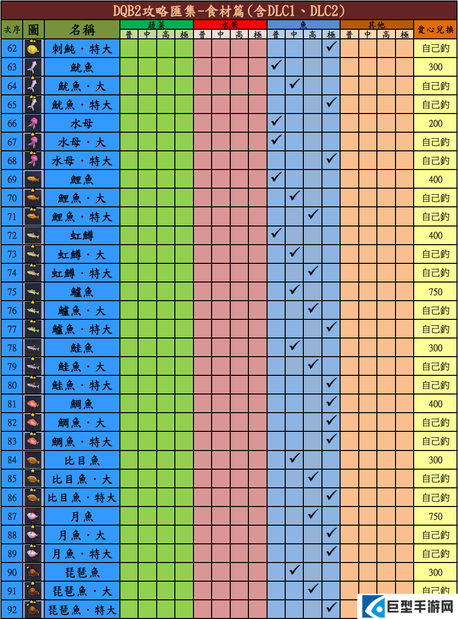 鱼类:普通12种 中级14种 高级18种 极品22种