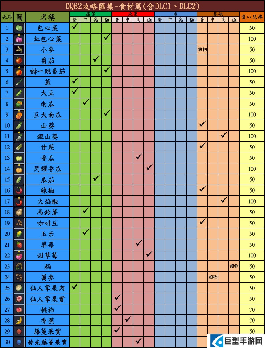 蔬菜:普通4种 中级3种 高级2种 极品3种