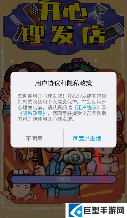 1、玩家打开,阅读相关隐私条例后点击同意并继续