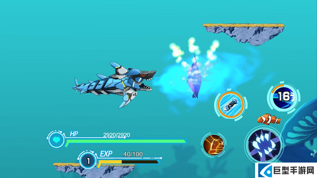 2、喷气背包,激光炮等众多的道具帮助鲨鱼提升属性。