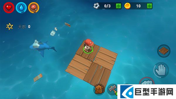 3、游戏中玩家需要操作角色离开木筏,拾取所需的物品,并建造相应的建造物,用于更好的生存。