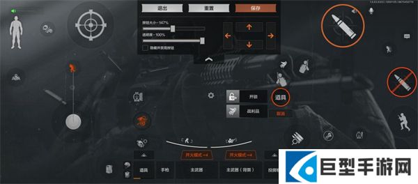 比起二指操作,三指操作最大的优势在于,可以将“开镜瞄准”,”开火“,以及走位这三个操作分离开,我们可以在之前设置的基础上,隐藏并禁用右侧屏幕的开火键,将左侧开火键放大并置于屏幕左上部分,用左手食指来控制这个”开火“键,此时右手拇指负责”开镜瞄准“和滑动索敌。
