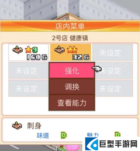 1.在游戏菜单中设置好要强化的料理,然后点击料理能够看到强化两个字,最后点击介入强化页面