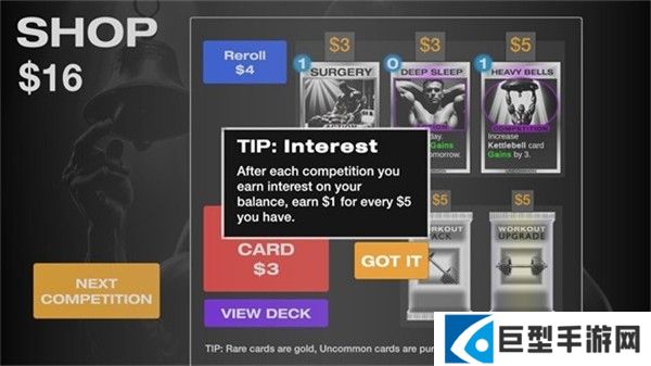 5、比赛胜利后会获得金币奖励,金币可用于购买新的训练卡牌,持续挑战更强的对手,向健身冠军的目标迈进。