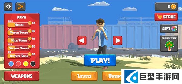 1、下载进入街头搏斗游戏,选择你的角色点击"PLAY"即可开始游戏;