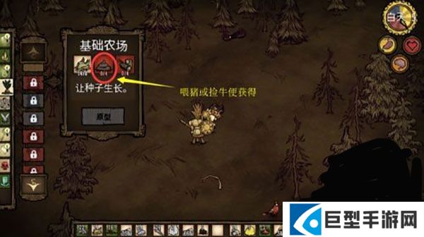 2、前期精神值可以通过采花、做花帽提高,中后期和猪人交朋友(给怪物肉猪吃)和睡觉也可以提高精神。