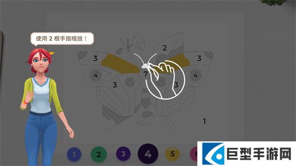 2、新手初次进入游戏后有新手引导,我们先给画涂个颜色,使用两根手指可以进行缩放;