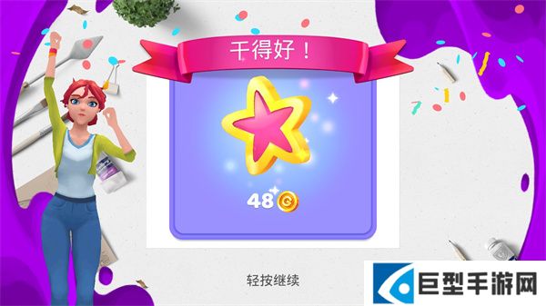 3、填完颜色后我们就可以获得奖励了,玩家可以利用奖励来装饰自己的房子;