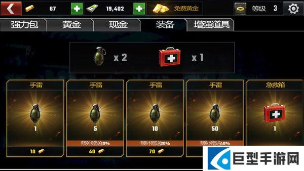 手雷和急救包是必需的,手雷能在玩家被僵尸包围的时候炸掉所有僵尸,急救包是可以恢复血量的。这两个道具每日登陆都会送几个,要节约点用,也可以花黄金买,但如果不是氪金玩家就不要花黄金了,把黄金留着买枪。