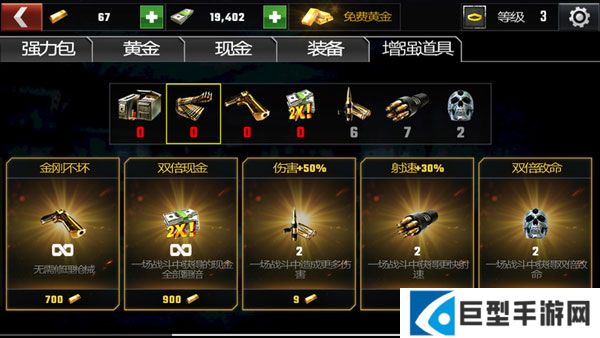 在进行任务前都能选择增强道具,提高游戏过程中武器的杀伤力和自身的保护。