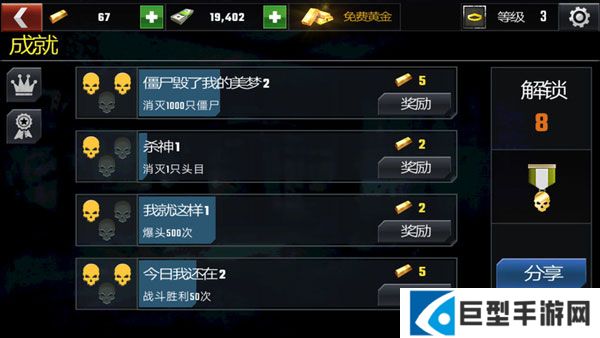 完成成就是玩家在游戏中获取黄金除去充值之外的最大来源,玩家不断完成成就,就可以领取更多黄金购买武器。