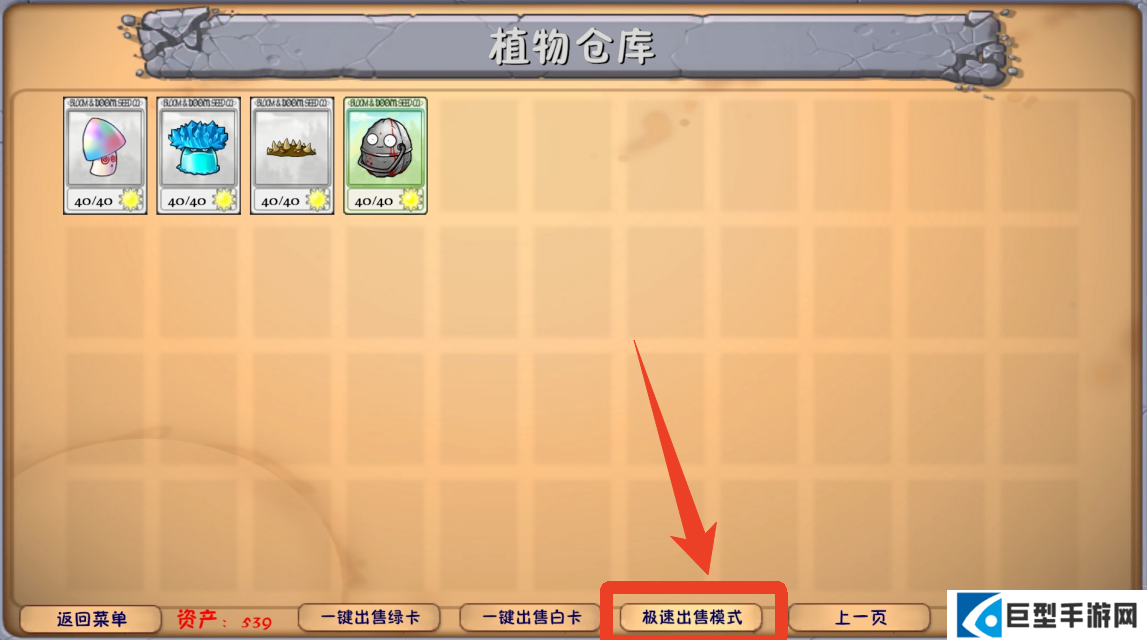 2)极速出售,点击下方出售模式可以切换,植物直接完成出售,不再显示售卖价值与是否出售的弹窗。
