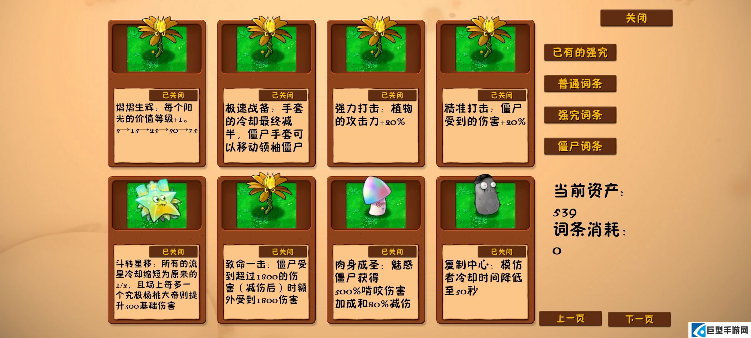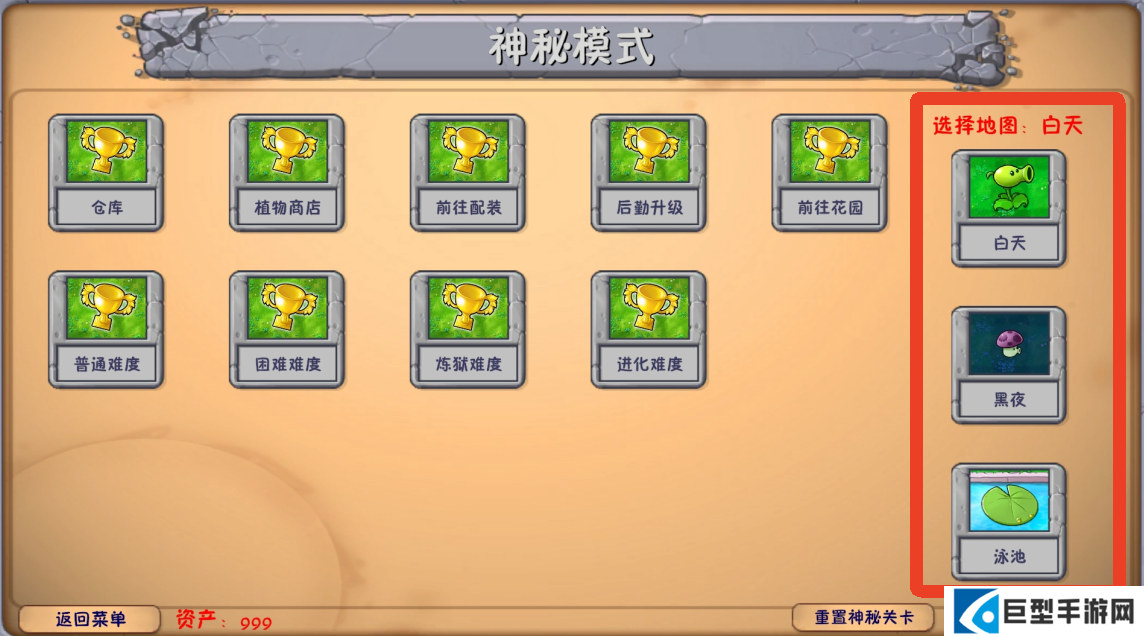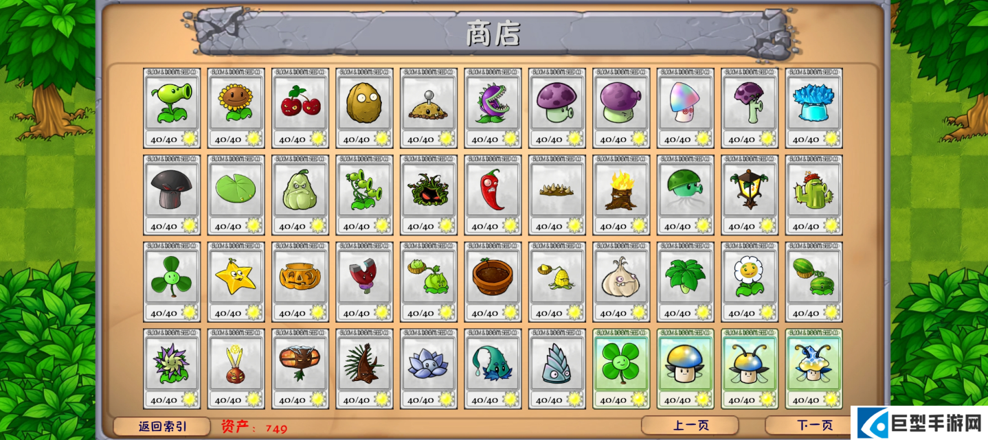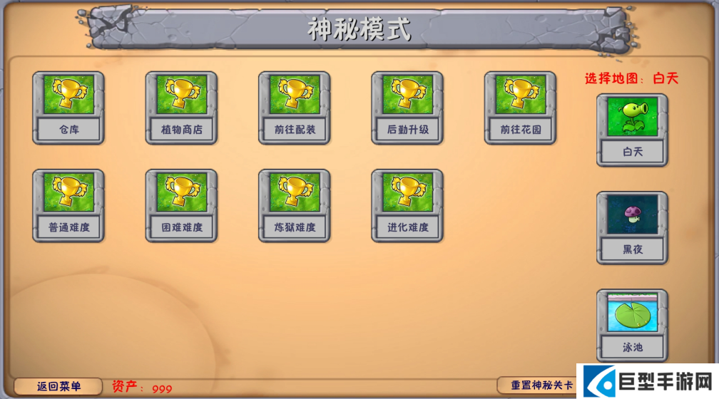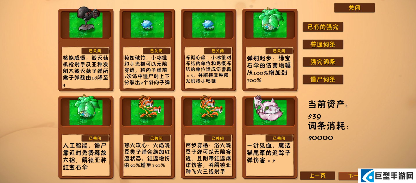 1、资产:仅限在神秘模式中使用。通过资产在商店购买植物,或在关卡选卡页面购买词条。