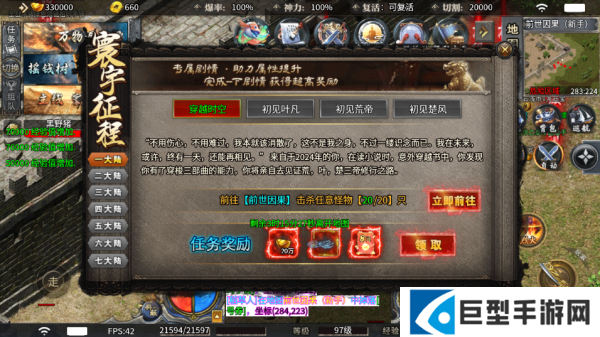 4、开荒奖励:每个大陆都有解锁奖励!顶级坐骑全部免费获取取!地图3-4小时必刷福利BOSS,充值卷爆不停!
