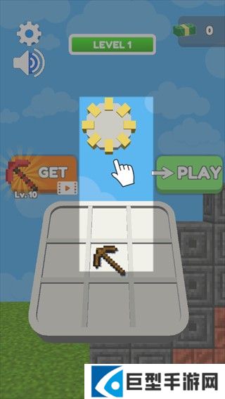 1、进入游戏,现将锄头安装在挖掘机上,然后点击play进入关卡