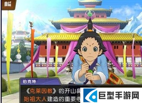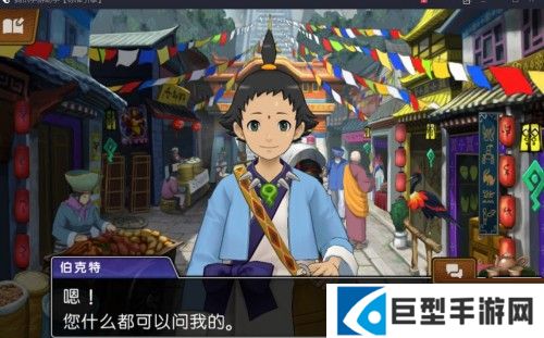 就在此时,站在街道旁的本地少年上前与成步堂龙一打招呼,原来他是一名寺院的见习僧侣一博库特,见面就介绍了这个国家绿色勾玉状物品。