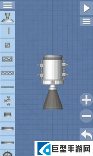 3.下面加一个分离器,分离器下面再加一个中等燃料箱,在下方放上鹰发动机;鹰发动机下面继续放一个隔离器,在燃料两边的位置放上电池板