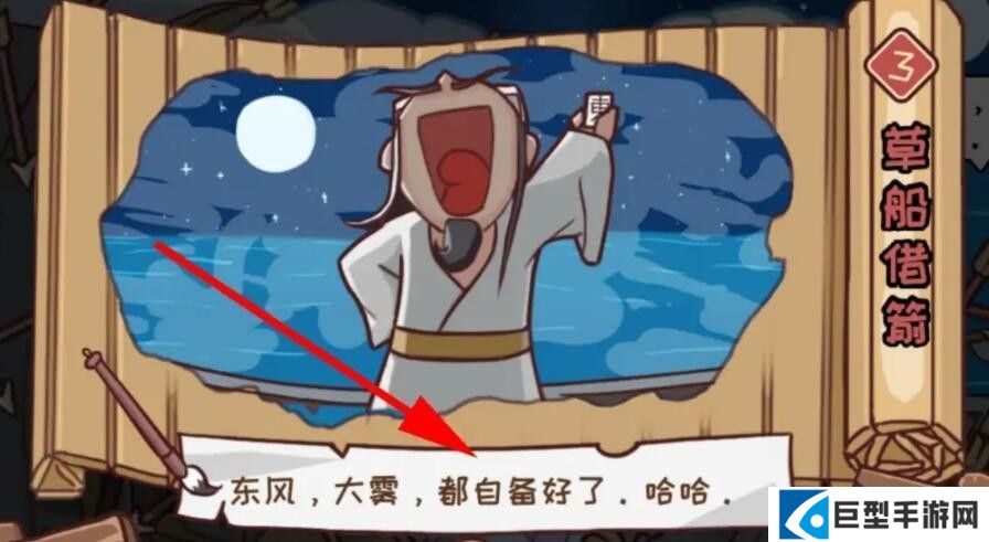 3、等东风和大雾都凑齐后,第三关草船借箭关就成功过关了。