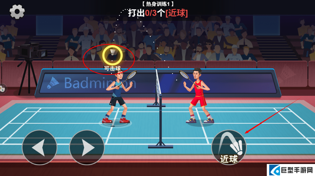 3、在屏幕中出现可以击球的提示的时候就能点击“近球”进行击球操作