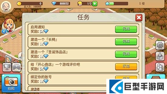 开心商店左面有个人物图标点击他会有任务提示这里有各种任务可以供玩家完成,完成后会有钻石奖励或者新的人群顾客来光顾您的店铺,增加您的收入!