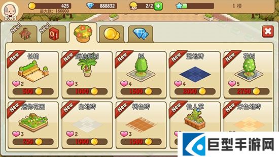 我们会发现这个游戏当中会让我们造很多植物和各种颜色的地板砖,这些东西起什么作用呢?其实这些东西起的作用是让我们的商店提高收入,比如我们选择一个植物,在两个商店边上种植上,这是我们发现使用费会+1!这样我们这两个商店就起到了费用加成的效果!下次顾客来这里消费,打个比方本来应该花10块钱,当我们建立了一个植物或者地砖的时候可能会收15块钱!增收5元钱!