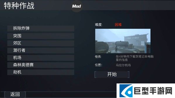 特种作战模式中,游戏难度自上而下逐级递增,初次体验的玩家建议选择游戏难度为“简单”的模式体验