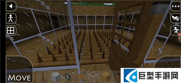 7、这就是做好以后陷阱,家门口做上一个再连到家里面,白天丢肉勾引狼进来,等到月圆变狼人按下按钮刺钉出来,刷钻石简直不要太容易