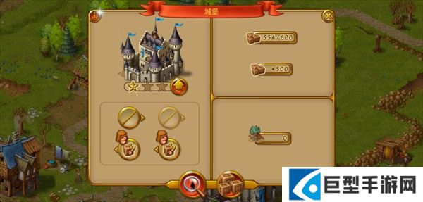 2、进入一个场景游戏后,你就会看到一个大的城堡,几个小房子、伐木小屋等。小房子提供人口,增加人口才能干活。