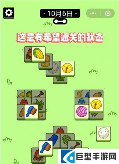 通关技巧:注意砖块下方是什么,不够三个的先找下方的砖块,找到能配对3个的先点开上面的砖块,露出下方砖块即可消除。