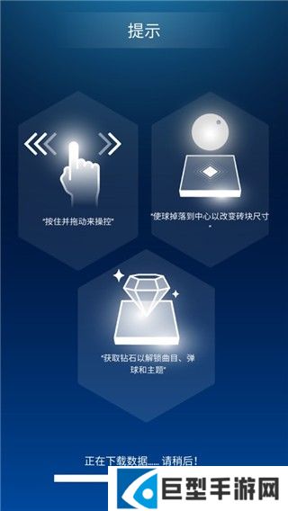 4、按住并拖动来操控,使球掉落到中心以改变砖块尺寸,获取钻石以解锁曲目、弹球和主题;
