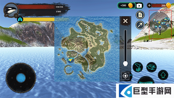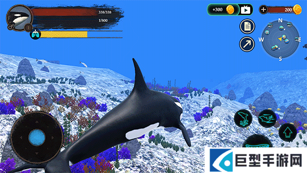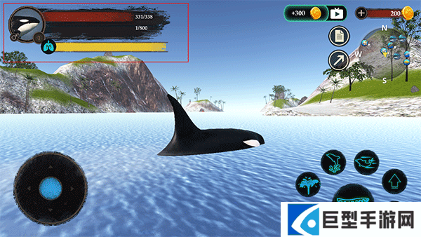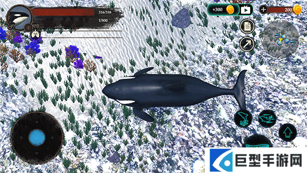 2、左边移动摇杆按钮可以操控虎鲸的行动,右边可以控制虎鲸的动作,比如喷水、跳跃、攻击等