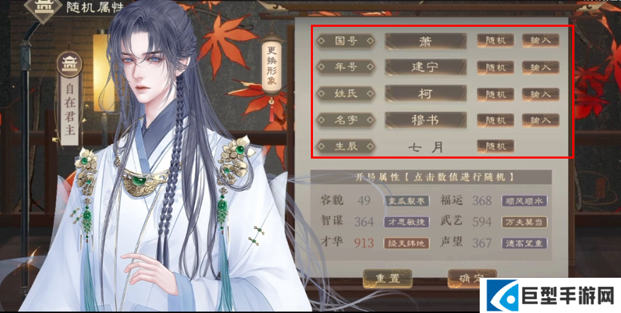 2、游戏开始前能够设置你的角色的各种初始的属性