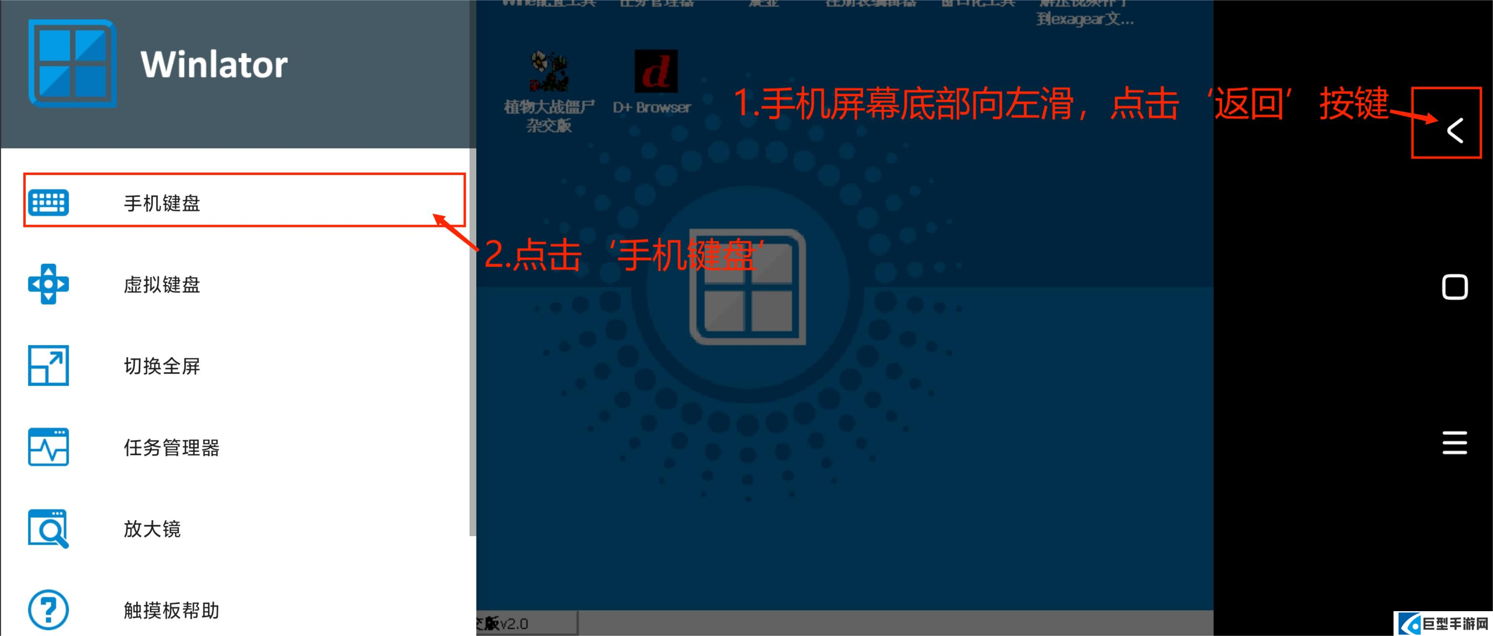 15.手机屏幕底部向左滑,点击‘返回’按键后再点击‘手机键盘’
