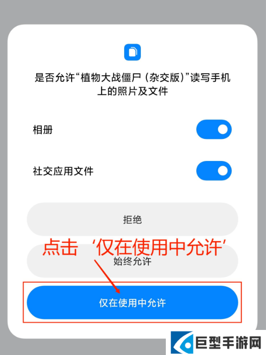1、游戏启动需要给予相关权限,点击‘仅在使用中允许’