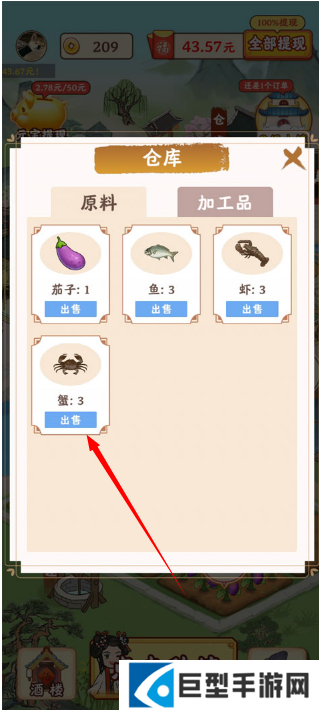 10、仓库中有多余的原料也可以进行出售,然后可以获得金币