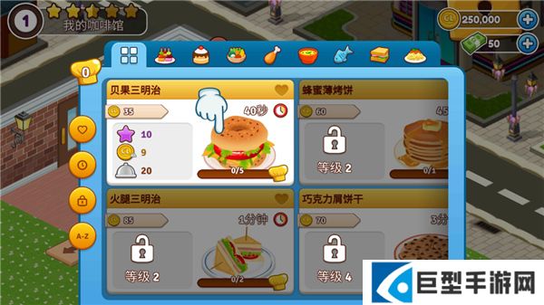 1、不断的升级店铺,解锁更多的食谱和世界名人。