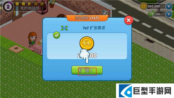 2、可以使用金币进行店铺规模的扩张,能够容纳更多的顾客制作更多的美食。